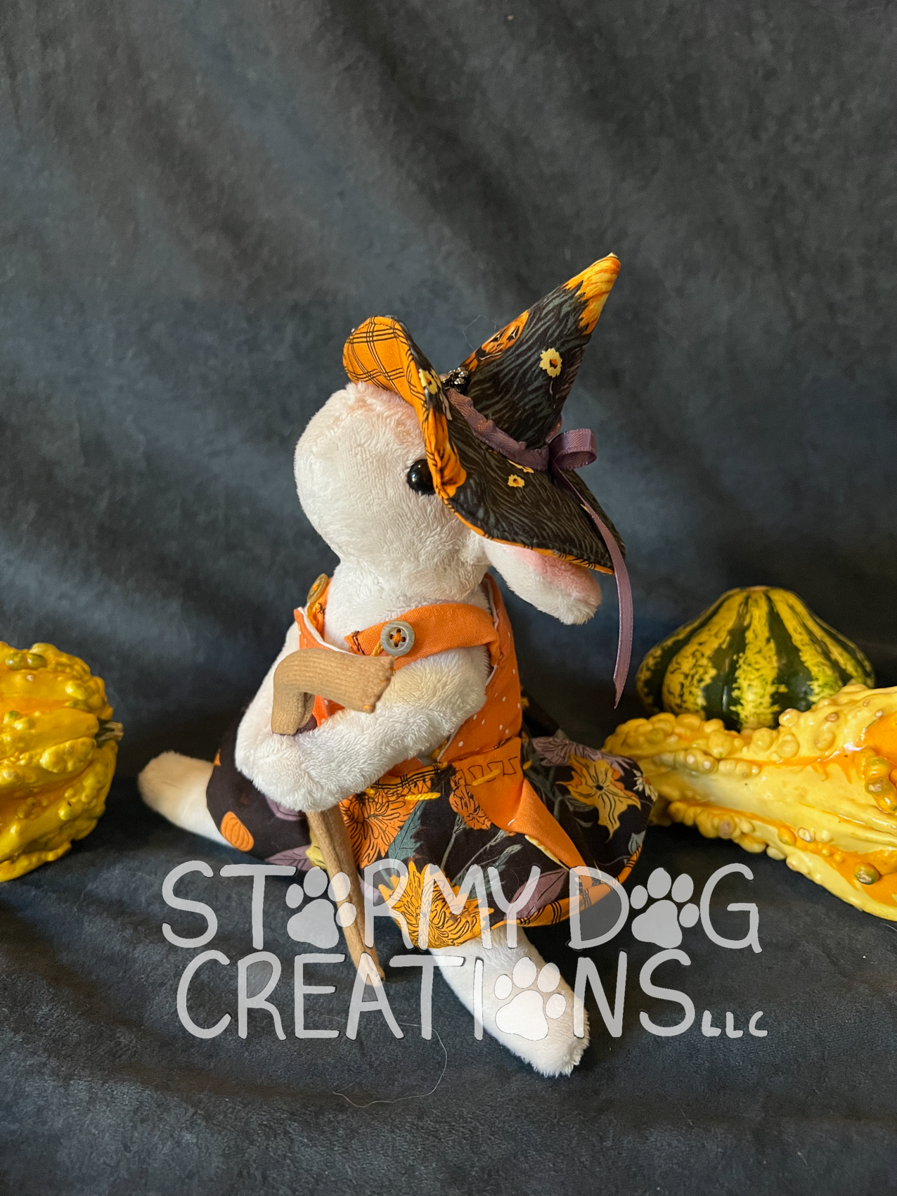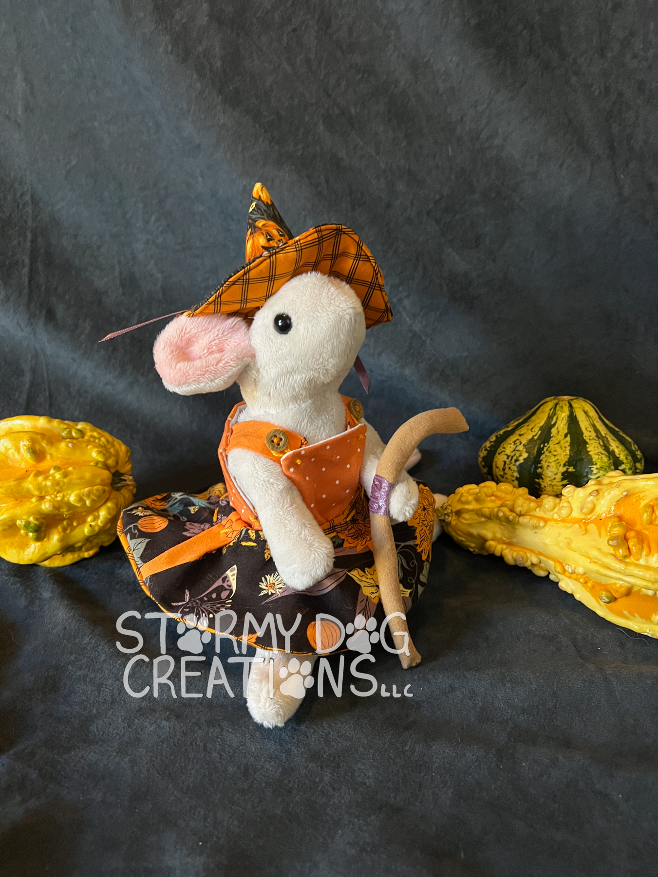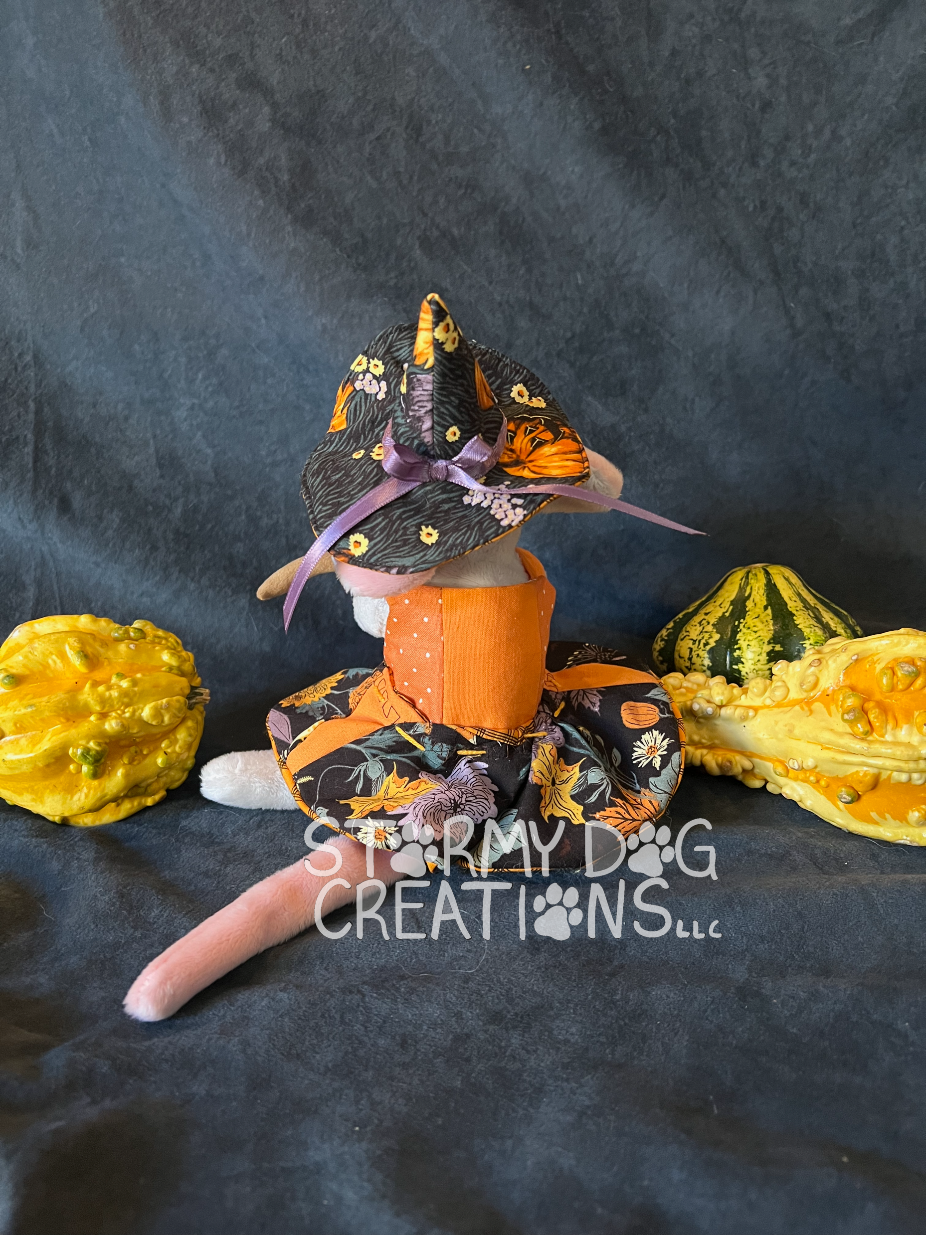 This adorable witchy mouse is handmade with our original patterns.